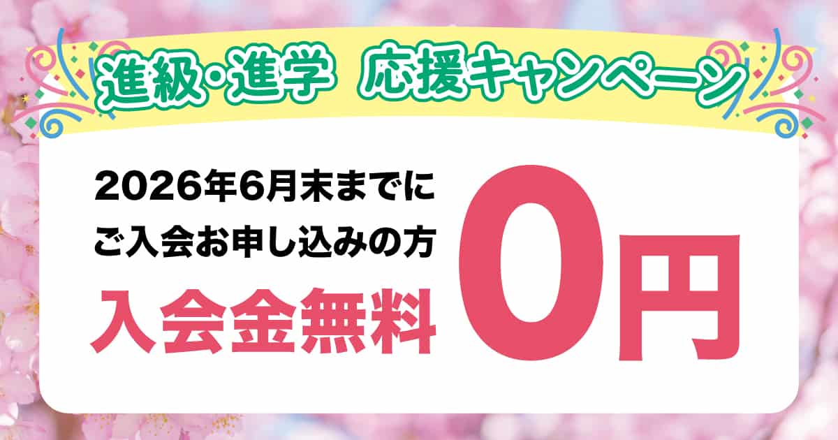 ※「進級・進学 応援キャンペーン」の特典は、2026年6月30日までに体験レッスンを受講のうえ、ご入会フォームより情報をご入力・ご入会いただいた方が対象です。